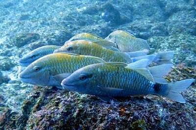 そしてソフトコーラルの良いところに「アオサハギ」の幼魚を発見。