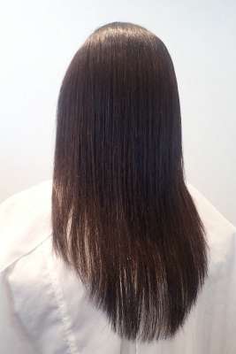 そしてパーマネントウェーブとヘアカラーの施術完了後のウエットな状態で。