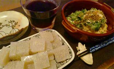 いただきます夕食の一品目はチーズ&キムチ和え。