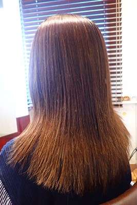 縮毛矯正ではございませんが、ドライヤーで乾かしただけでこのような綺麗な収まりです。