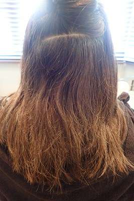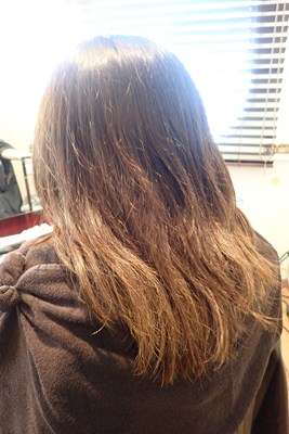 大きくウネるおクセをお持ちでいらっしゃり、中間から毛先にかけては乾燥しておられますが。