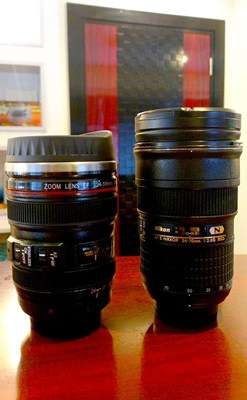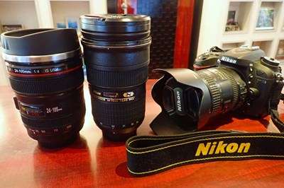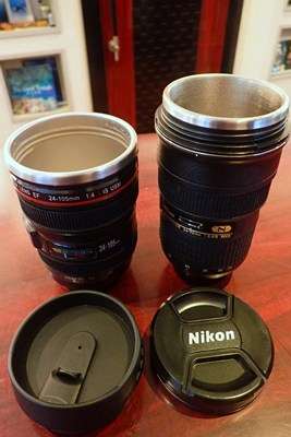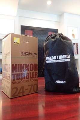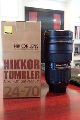 かと思いきや、以前にお客様から頂戴しました「AF-S NIKKOR 24-70mm f/2.8G ED」を模したタンブラーでありまして。