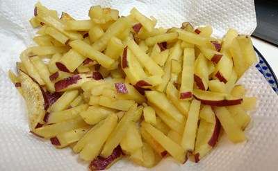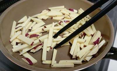 先日、実家から持ち帰らせてもらいましたサツマイモを刻んで水に浸し。