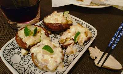 椎茸のベーコン・チーズ・すだちの包み焼き。