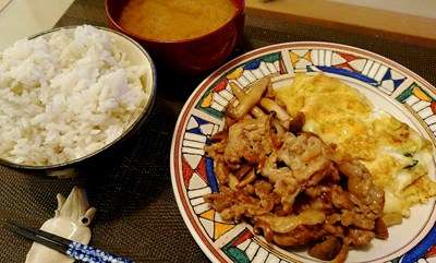 豚肉&しめじ炒め・玉子焼き・ごはん&味噌汁でした。