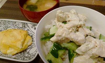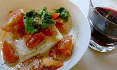 昨日の夕食の一品目は、豆腐&トマト&大葉のサラダ。