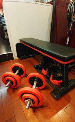 12.0kgのウェイトを持ち、左右で30回×2セットの計120回。