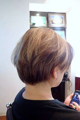 髪が伸びて毛量も増していましたが、スッキリ&シャープな仕上がりです。