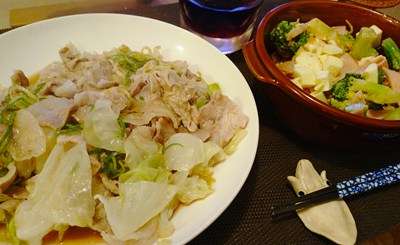 豚肉&キャベツ炒めと豆腐&ブロッコリーのサラダでして。
