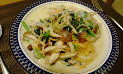 豆ヌードル使用のキノコ&ほうれん草入りクリームスパゲティでした。