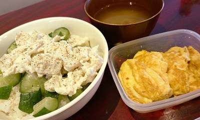 そしてSeul(e)に出勤後にいただきました朝食は、蒸し鶏のむね肉・キュウリ丼&玉子焼きでして。