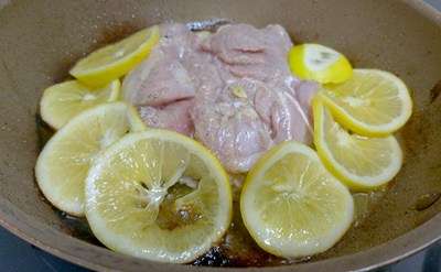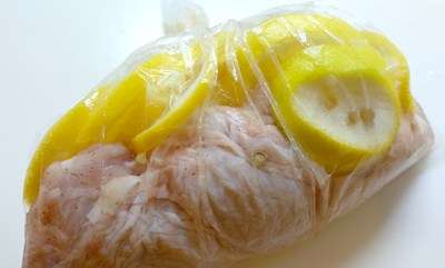 鶏むね肉とカットしたレモンを、コンソメ・酒・塩・胡椒と混ぜ合わせて揉みこみ。