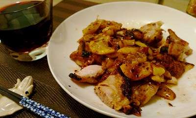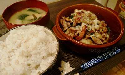 豚肉のチーズ焼き、ごはんに味噌汁でした。
