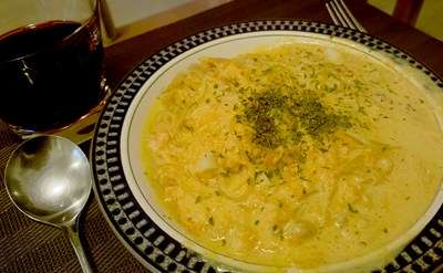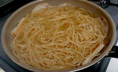 毎度おなじみ、豆ヌードルを用いました堂丸特製・ニンジンソースのスパゲティでして。