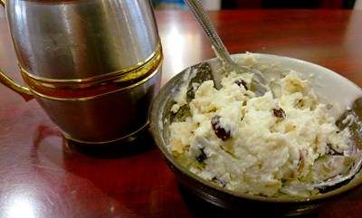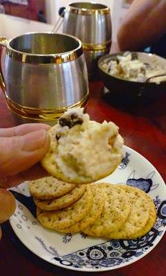 いただきます前菜は生ハムとお客様「Kayoko さん」「さっちゃん」から頂戴いたしました蕪の漬物のサラダ、そして酒粕・クリームチーズ・ナッツ・レーズン・ハチミツを練りこみましたペーストを乗せて焼いた食パンでして。