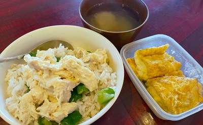 豚肉&しめじ炒め・玉子焼き・ごはん&味噌汁でした。