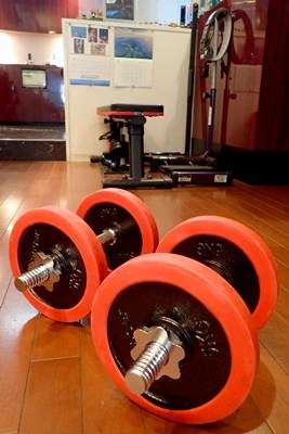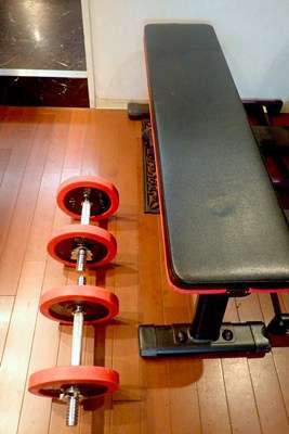 12.0kgのウェイトを持ち、左右で30回×2セットの計120回。