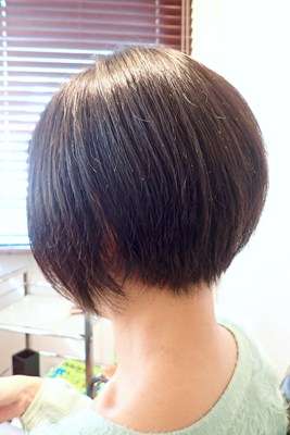そして、シャープなカットラインの仕上がりショートスタイルです。
