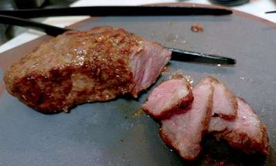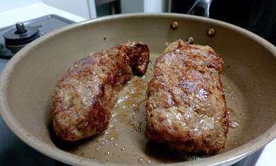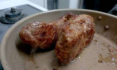 そして取り出しましたお肉を、フライパンにてバターと合わせて焼きに入り。