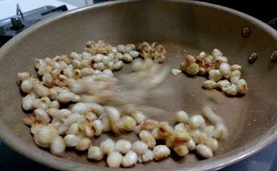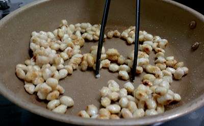 大豆の水煮に片栗粉をまぶしてフライパンで炒め。