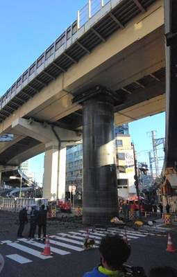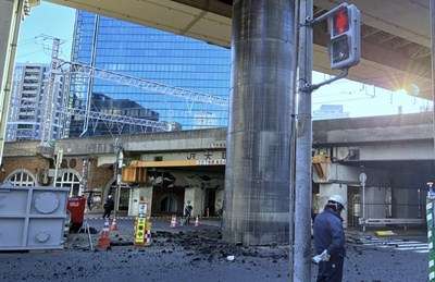 『午前6時50分ごろに通行人の男性が「コンクリートが落ちてきている」と警察に通報がありました。