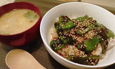 堂丸特製ピーマン丼&味噌汁でした。