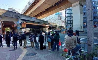 現場近くでは報道陣の方々や一般の方々が見ていたり撮影していました。