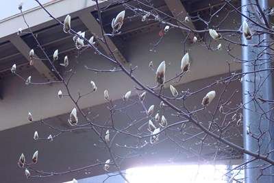 こちらはビル前の植え込みにありますハクモクレンの木。