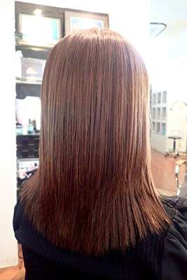 艶のある暖色系のヘアカラーです。