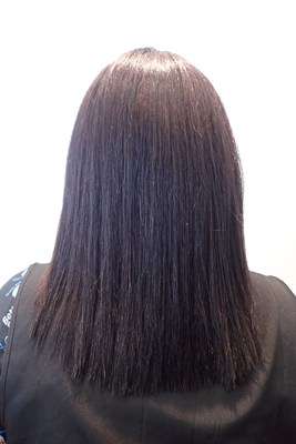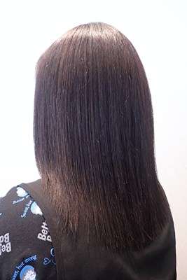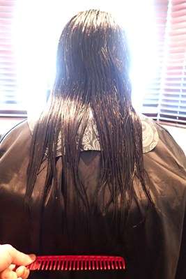 その姪は施術開始前はコームの位置までのロングヘアでしたが。