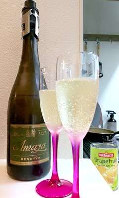 寝起きの早朝にスパークリングワインで乾杯からのスタートで。