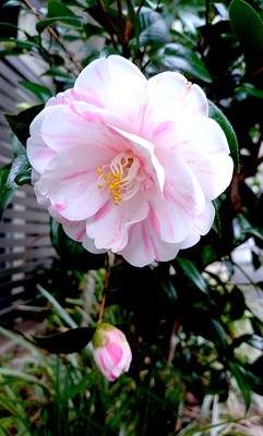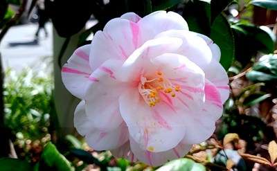 五色八重散椿(ごしきやえちりつばき)が綺麗に開花していました。