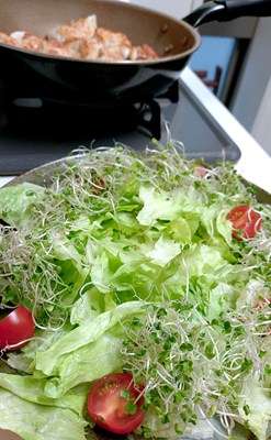 ミニトマト・レタス・ブロッコリースプラウトを敷き詰め。