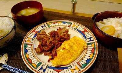 豚肉の塩麴焼き・玉子焼き・大根の柚子はちみつ漬け・ごはん&味噌汁でしたが。