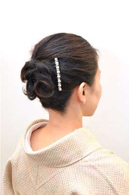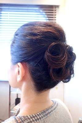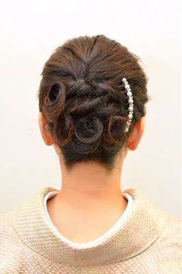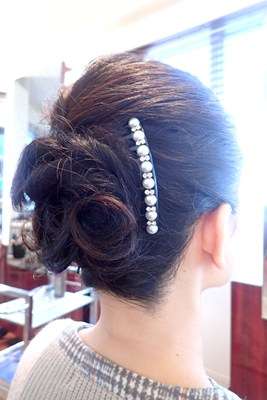 肩上の長さの髪を倉橋がアップスタイルに仕上げさせて頂き。