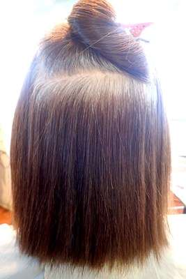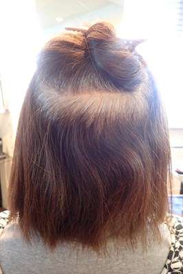 ドライヤーで乾かしただけの髪の状態で。