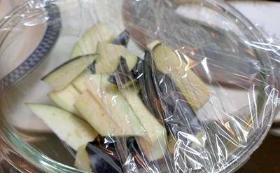 準備していましたナスを用い。
