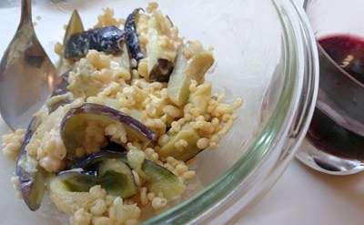 出来上がりました、ナス&天かすにマヨネーズと麺つゆで味付けをしました一品目と。