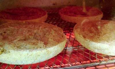 マフィンをトースターで焼き上げ。