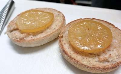 はちみつをかけながら、贅沢にも輪切りになって漬け込まれている柚子もダイレクトにON!