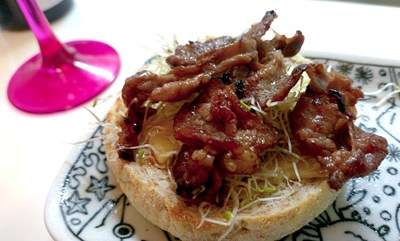 その上にラム肉を乗せましてのオープンサンド!