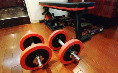 12.0kgのウェイトを持ち、左右で30回×2セットの計120回。