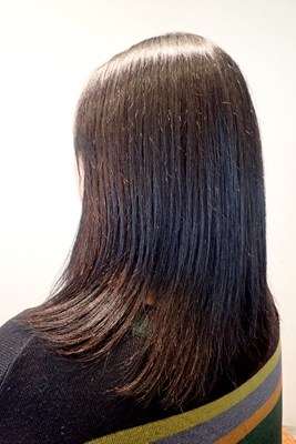 落ち着いたシルエットの艶やかな髪に仕上げさせて頂きました。