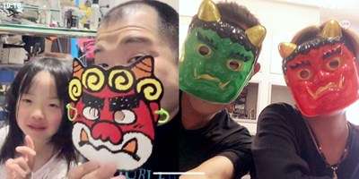 お嬢さん「Ruka ちゃん」と、お互い鬼のお面を着用して楽しんでおりました。