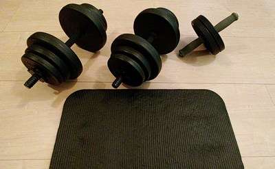 12.0kgのウェイトを持ち、左右で30回×2セットの計120回。