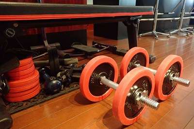 15.0kgのウェイトを装着し、30回×3セットの計90回。