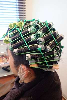 念願のパーマネントウェーブの施術開始で。